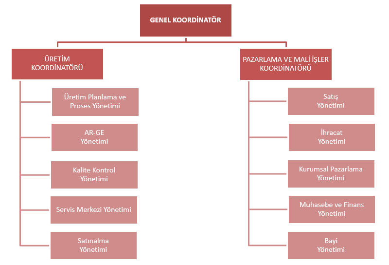 Firmamızın yönetim alt yapısı ve sistemi aşağıdaki "Organizasyon Şeması" çerçevesinde işletilmektedir.